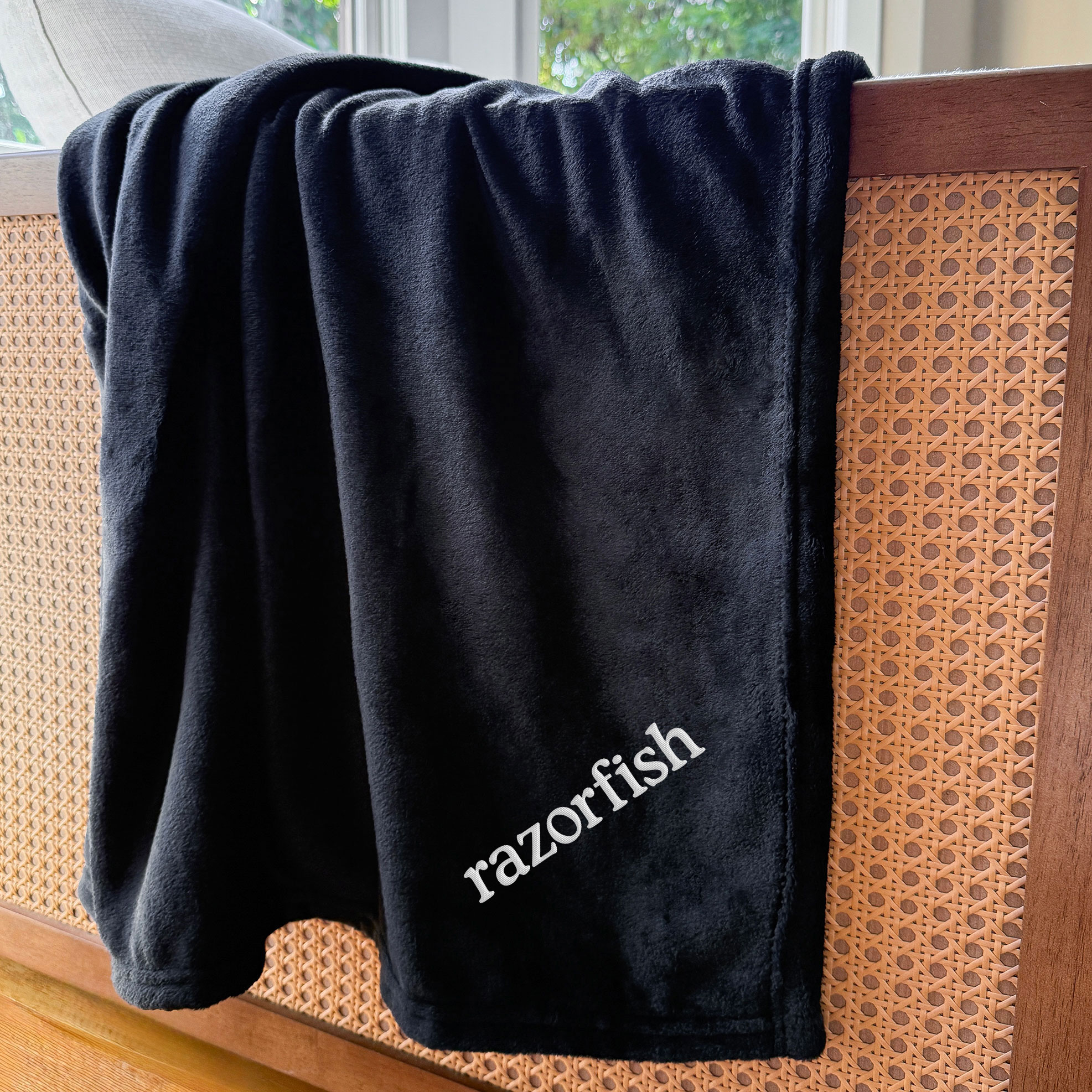 sku: RZF-158This classic Velura Plush Throw offers lightweight warmth and everyday versatility, making it a staple for both home and travel Soft, durable, and easy to care for, this blanket is perfect for cuddling up on cold days. It features a white Razorfish logo embroidered on the corner.