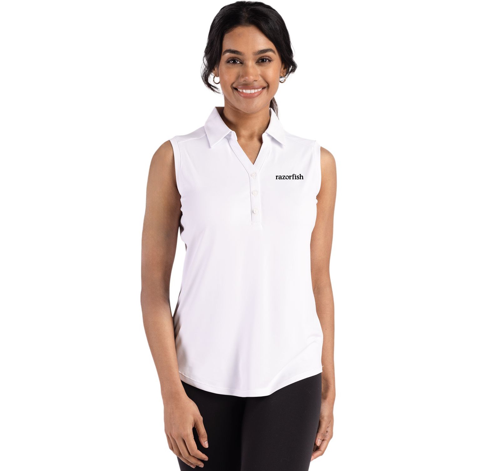 sku: RZF-159The Forge Eco Stretch Sleeveless Polo is engineered with stretch for exceptional versatility. It’s designed to be your favorite women's sleeveless active top for golf, the clubhouse, the office, travel, work from home, or wherever adventure takes you. The black Razorfish logo is embroidered on the left chest.